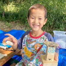 自然の中で自由に遊ぼう!たき火、工作、水遊び、こま、けん玉など。