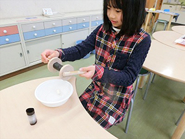 | 内容 | 特別な土をつかってピカピカのドロ団子づくり。今回は青色に挑戦だ! |