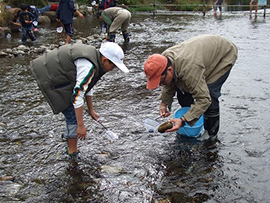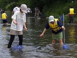 | 内容 | 木曽川水園じゃぶじゃぶの河原にすむ水生昆虫(トビケラやカゲロウ等)やエビ等を採集し観察します。 |