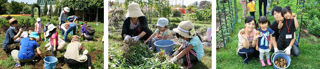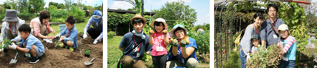 市民花壇内にあるキッチンガーデンで、植え付けから収穫までを体験して